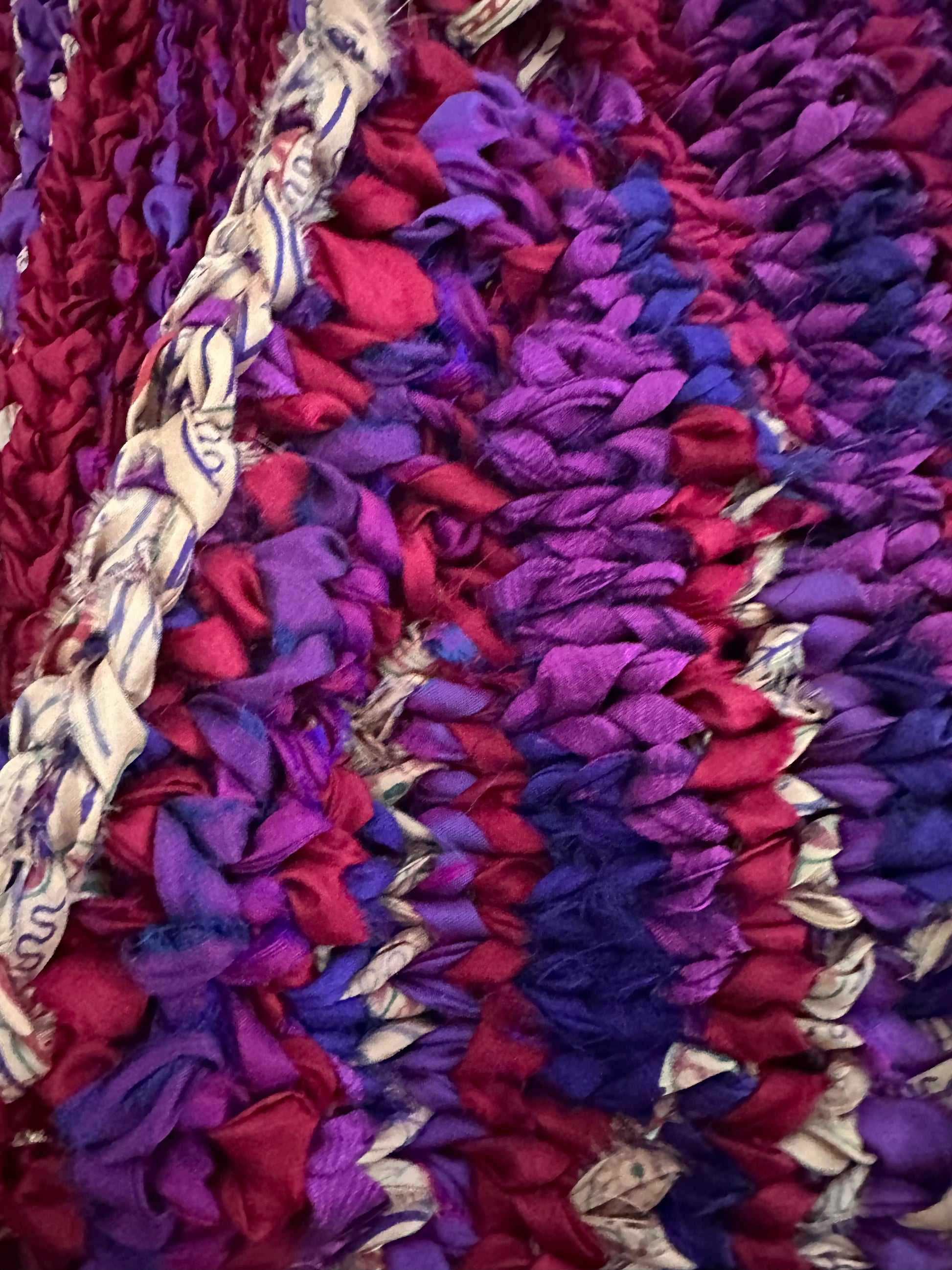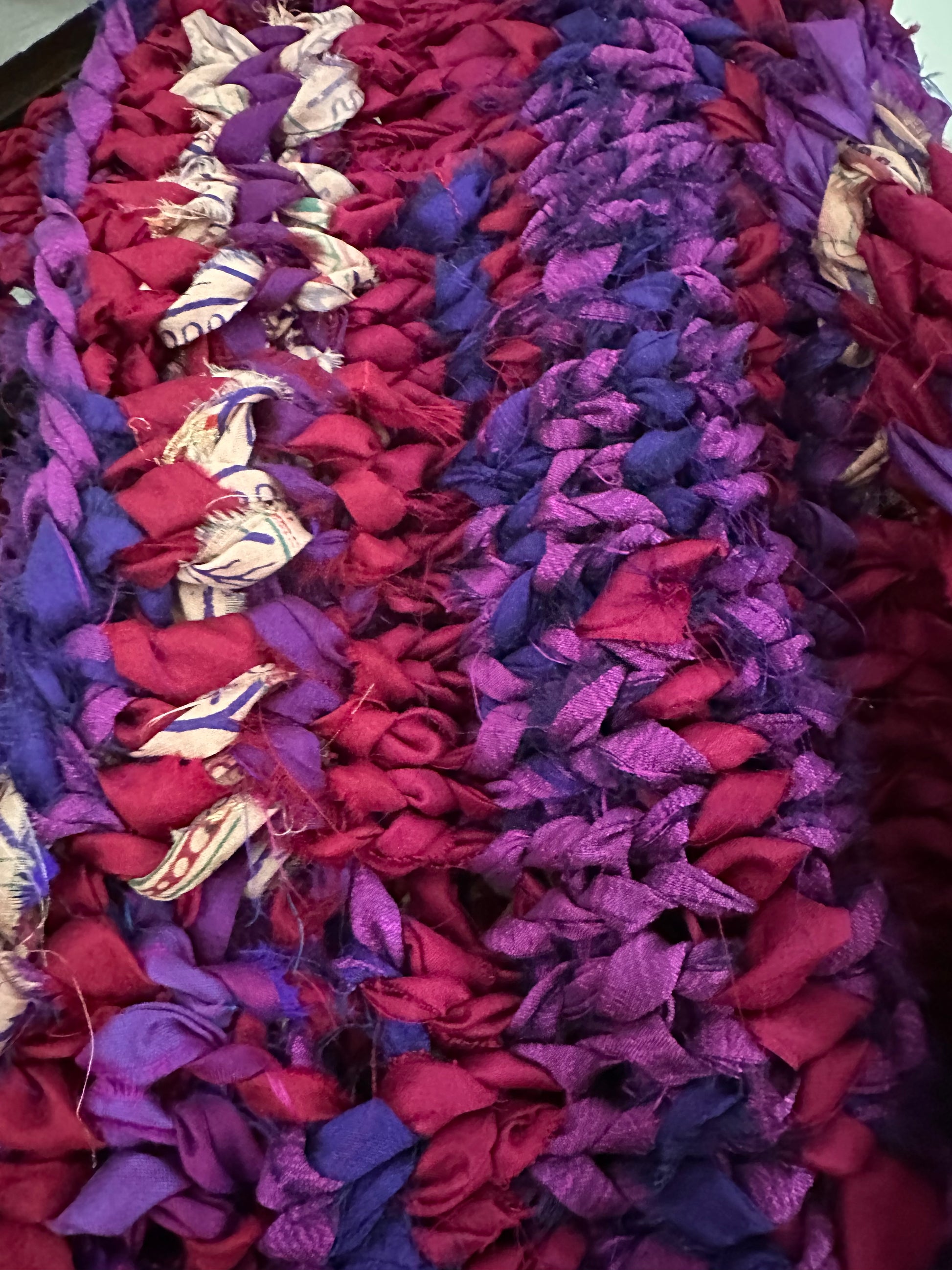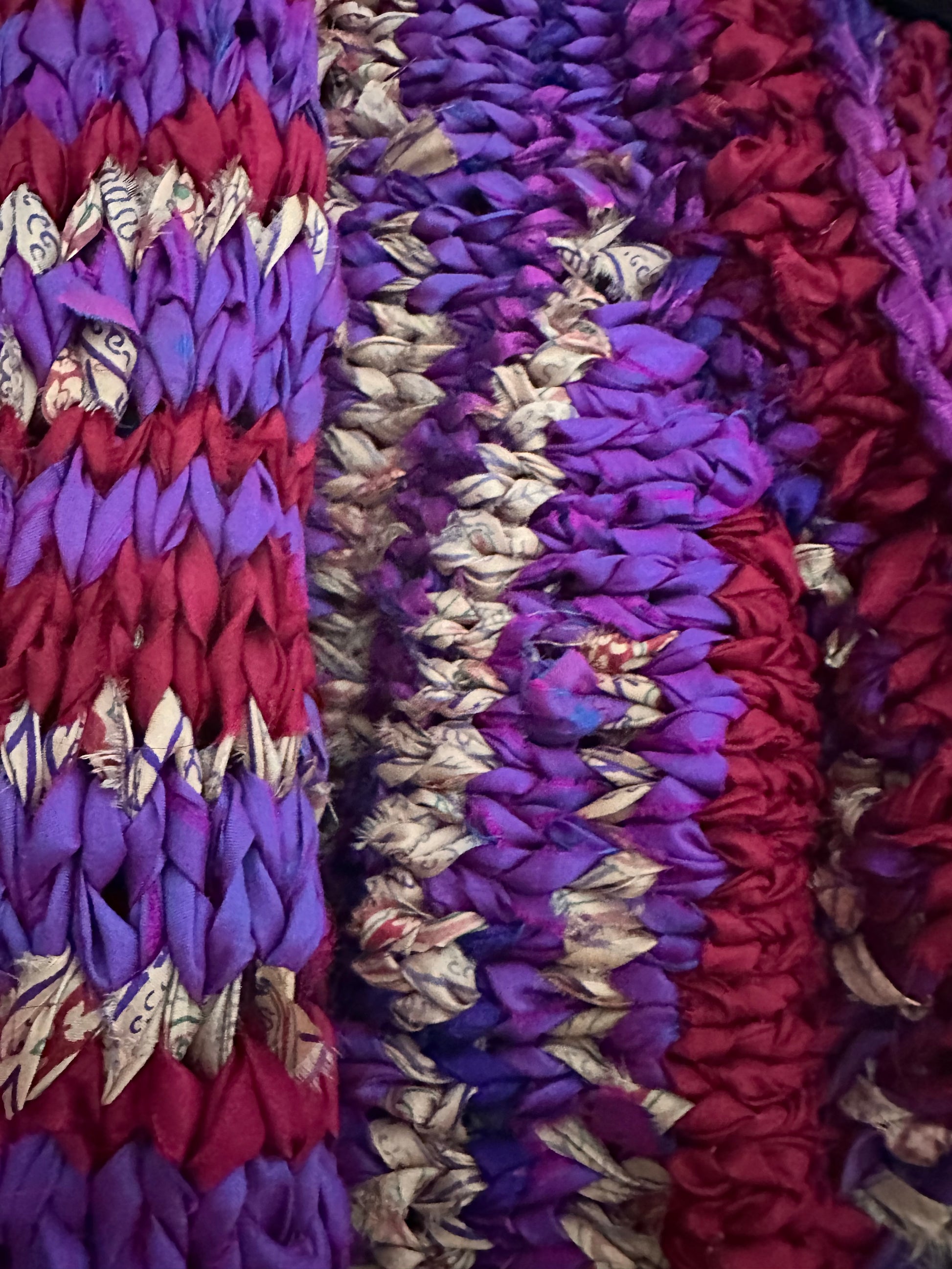 Beautiful hand knitted sari silk ribbon crop jacket. Unique one of a kind piece hand made out of upcycled sari silk ribbon. Size M-L,